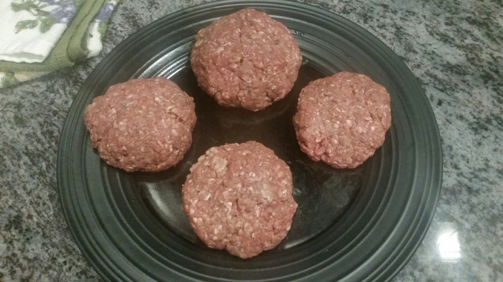 I did a tsp of the paprika, garlic, and thyme and a tablespoon of the dried chives. Then I did 2 tablespoons of the hot sauce and worcestershire sauce. Mix all this to a pound of ground beef and form your patties. I did 4.