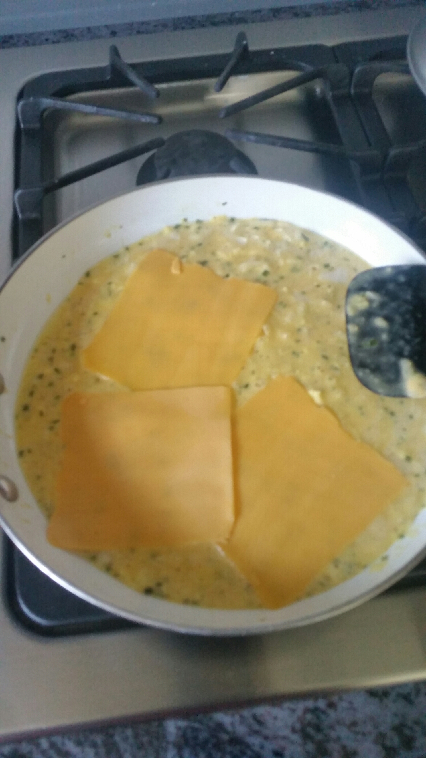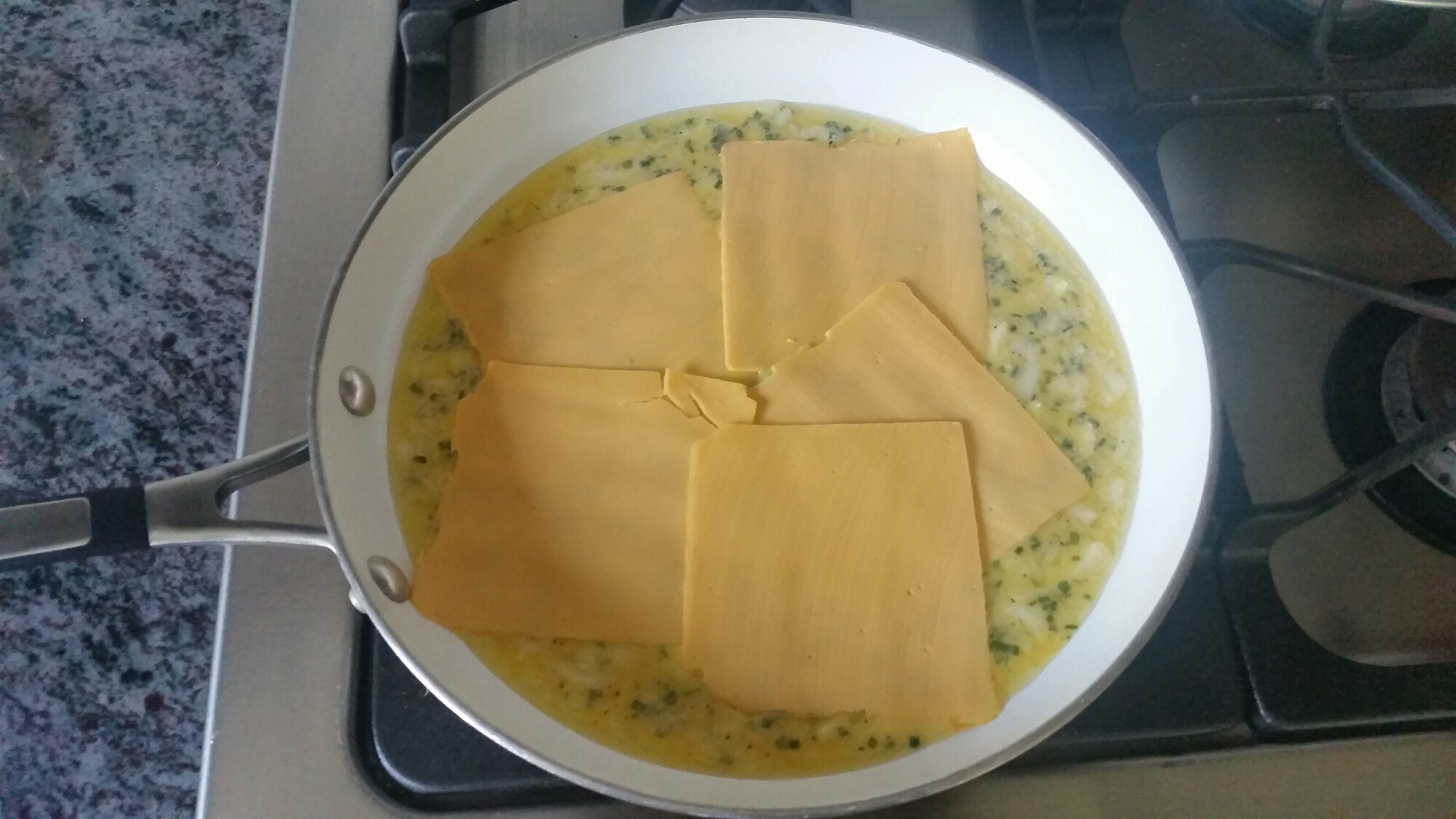 Then after another minute or 2 I add the other 3 slices of cheese: