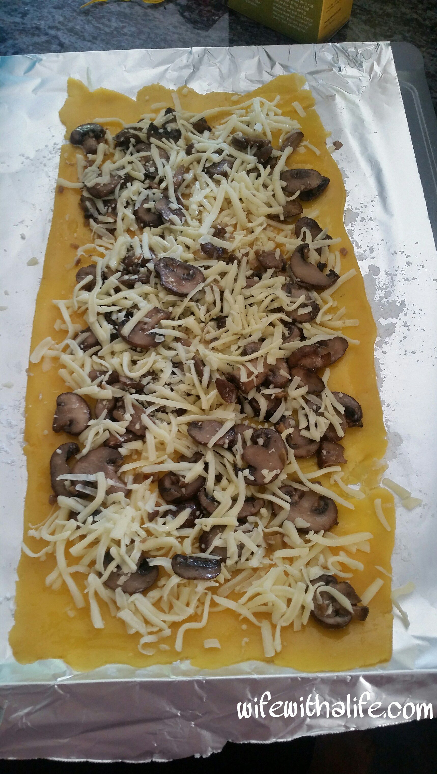 Mix mozzarella with cooled mushroom mixture and top pastry dough. Bake according to pastry instructions, mine said 400 for 20minutes but depending on the one you buy it may be different.