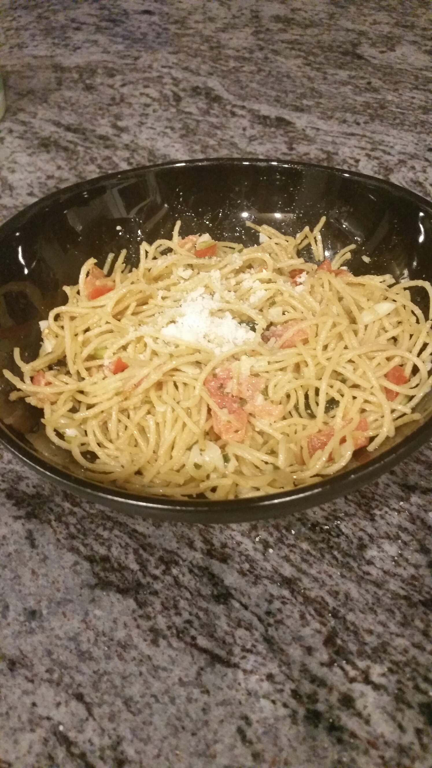 This simple pasta dish is easy and full of flavor!! I normally use spaghetti or thin spaghetti for this dish but you can use any pasta you have on hand.