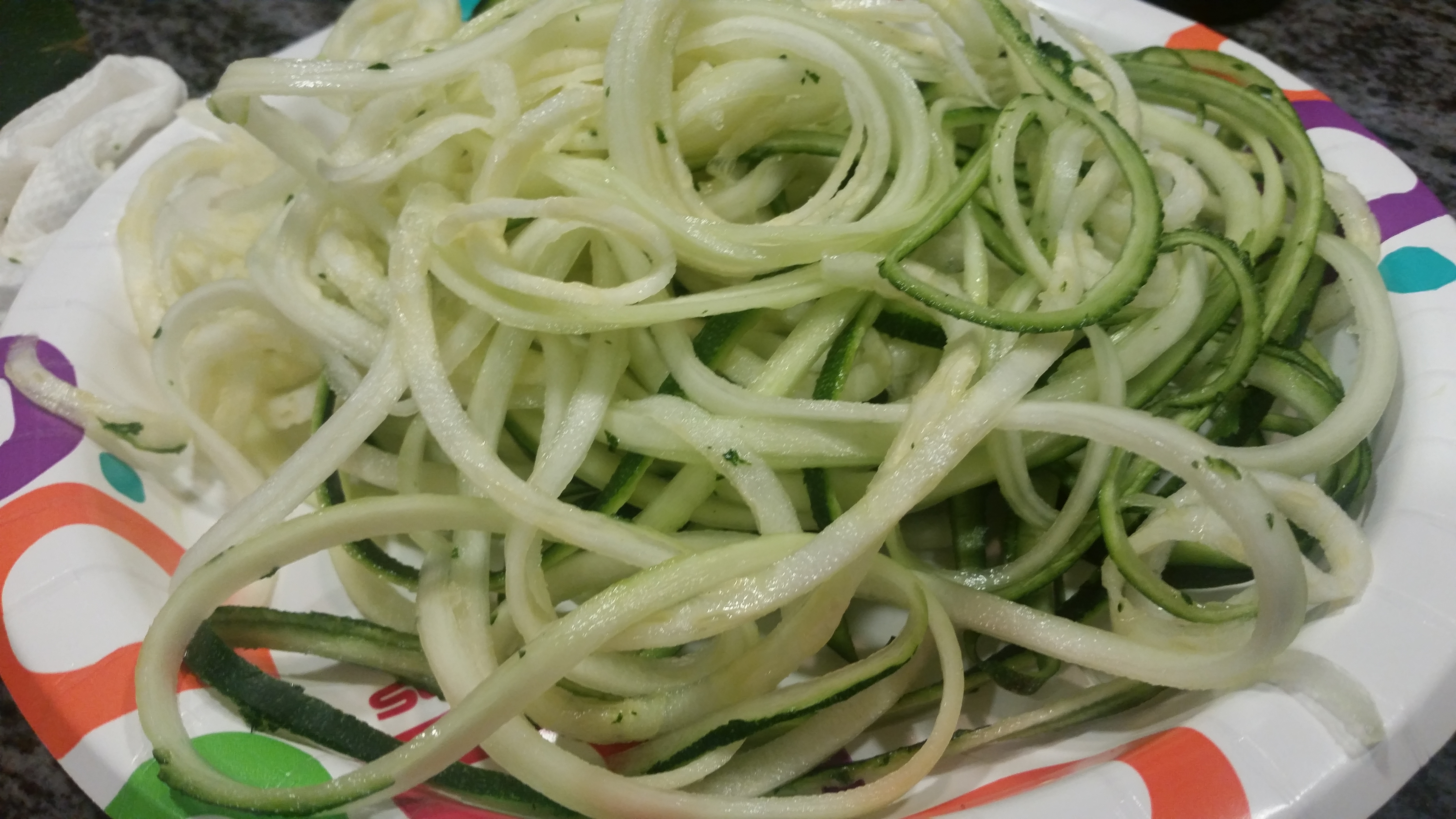 It came out like legit pasta, However since my spiralizer didn’t cut the strands off I had LONG strands so I just took my kitchen scissors and snipped them.